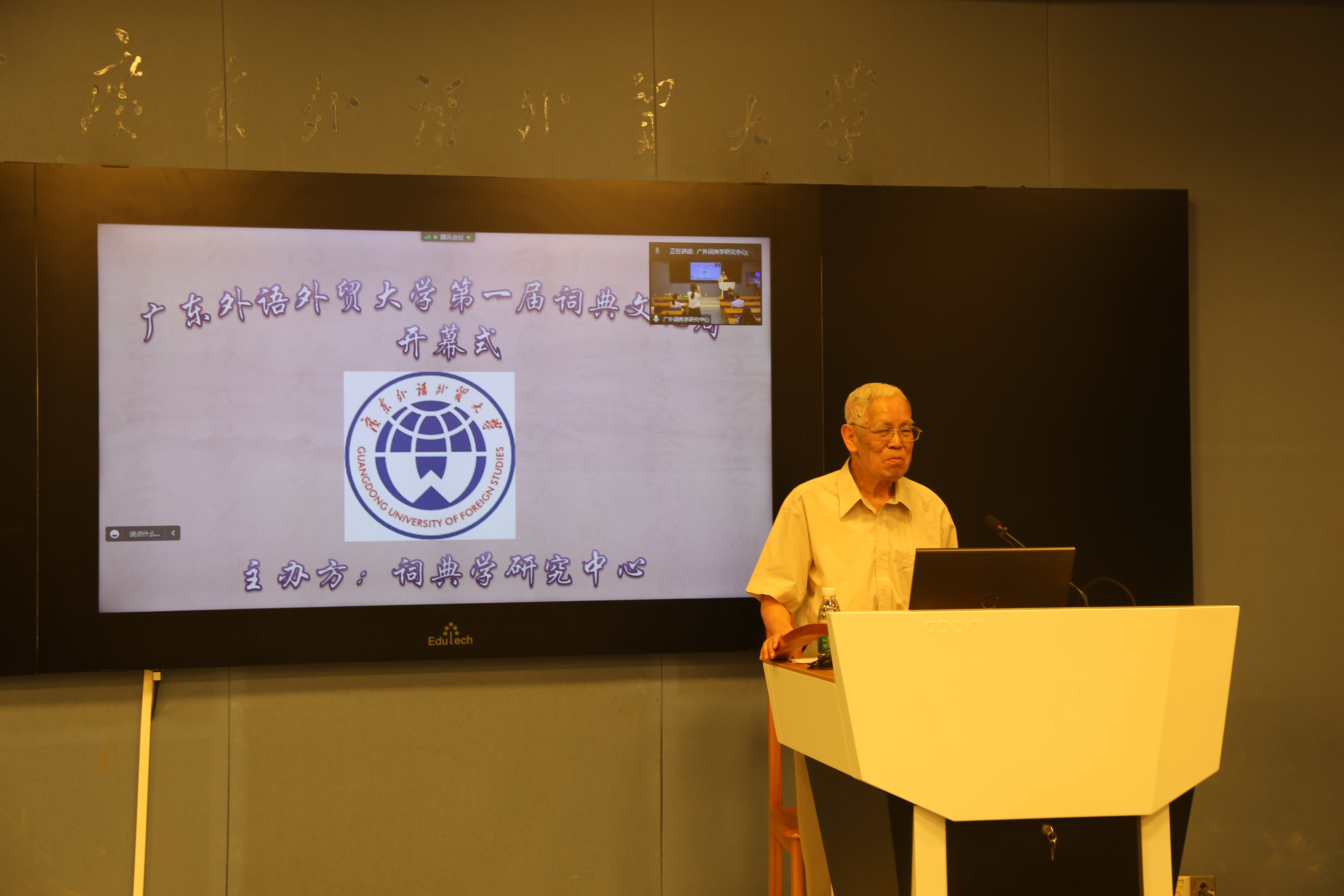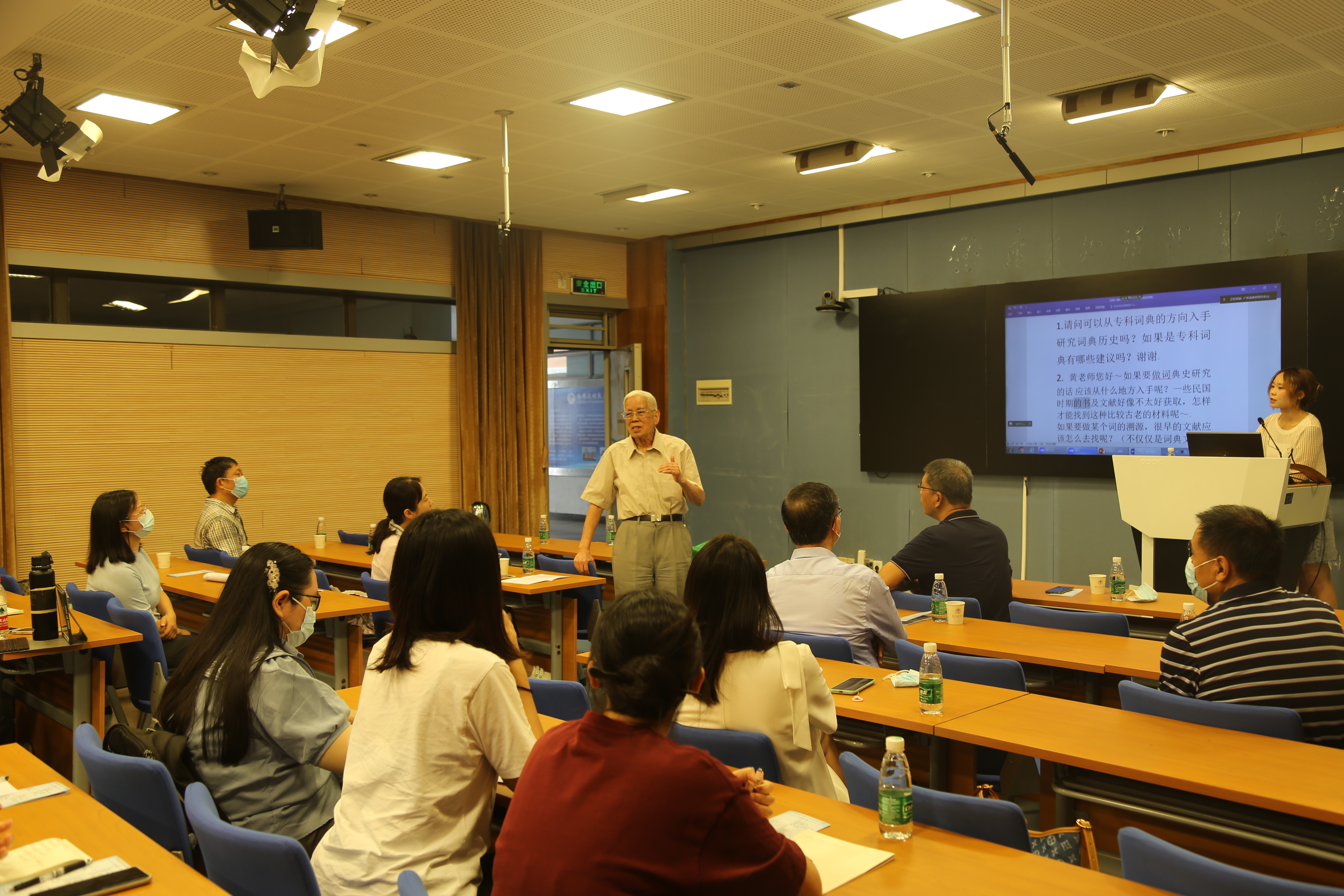 我国理论词典学开创人之一、曾获“南粤楷模”称号的广东外语外贸大学前任校长黄建华教授,向各位老师和同学介绍了词典学的发展史以及辞书人的成长史,广外词典学和词典编纂凝聚着学校几代辞书人的不懈奋斗和发展,章宜华教授带领着广外一批辞书研究者,把我校的词典学的发展推向高潮,让学校的辞书事业在新时代百尺竿头更进一步。