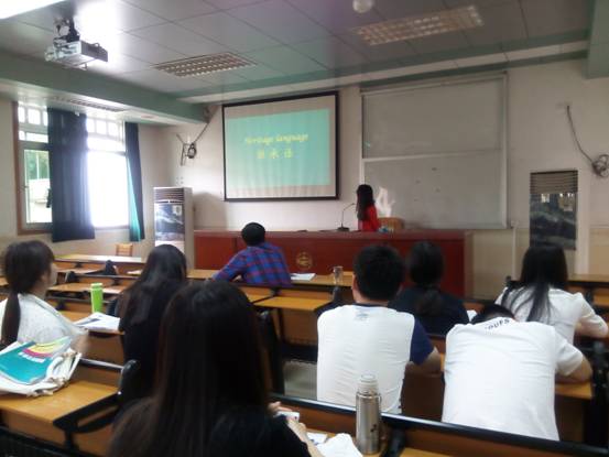 13级的熊怡同学以“继承语”为话题给大家介绍了与所学专业相关但暂时还未被学术界所关注的一些语言的继承现象。她给出了学术界对于继承语的三种比较具体的定义,让大家对继承语有了大致的了解,然后探讨中国的继承语学习状况并提出有无必要推广继承语的学习等问题供大家讨论。