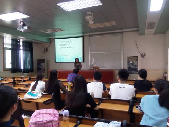 首先,13级的吉伟琴同学就生活中常见的大部分人对于中医的热衷和信奉展示了以“中医药的迷思”为主题的报告,从被商业化的一些中药切入,一下子就吸引了大家的注意和聆听的热情。吉伟琴同学选取了大家所共知的名贵中药,如冬虫夏草,灵芝,人参和鹿茸,依据中医学界的圣经《本草纲目》,分析这些中药的成分,剖析其治病原理,药物的治疗用途和用药时的注意事项,一针见血地指出大部分人对这些昂贵中药似乎包治百病的观点是错误的,是没有医学依据的,她激昂的声音和独特的说法立即引起了在座同学的关注和热烈讨论。吉伟琴同学又趁势给大家提供了生活中常见的价格很便宜但功效和以上名贵中药相似的其他中药类型供大家选择购买。接下来,吉伟琴同学又从打着中医旗号的民间禁忌和中药的副作用到底小不小的角度,结合自身的体质和自己看病时的药不对症,呼吁同学们要注意观察自身的体质保持阴阳平衡。