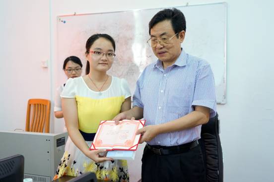 章宜华教授在会上发表了讲话,向毕业生提出了几点希望:希望大家能够怀揣远大理想,立志高远;希望他们能够脚踏实地,踏实苦干;希望大家能够坚守自己的心灵,走上社会后继续学习,汲取知识。最后章宜华教授还为获得2012级优秀硕士论文的研究生颁发了奖状和纪念品。