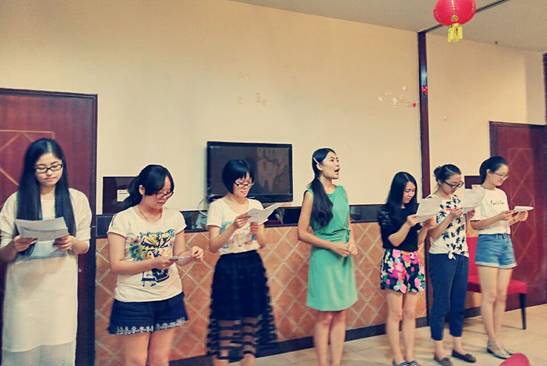 接下来是最激动人心的时刻!2015级新生各自带来了自编自导的节目,让人耳目一新。有的唱歌,有的表演方言版朗诵。大家欢聚一堂,真是其乐融融!