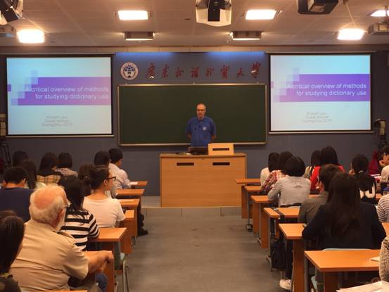 2015年11月24日10点,为期4天的海外名师讲座正式拉开帷幕。本期讲座邀请了波兰波兹南密茨凯维奇大学在职教授Robert Lew为大家带来词典学研究的最新成果,吸引了不少研究生以及老师前来聆听讲座。出席讲座的有章宜华教授,夏立新教授,马立东教授等国内从事词典学研究的专家。