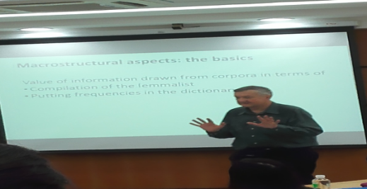 首先,Prinsloo教授介绍了什么是语料库,并指出了语料库对词典编纂工作的重要性; 随后,他介绍了语料库在宏观微观上的不同功能,并指出,“frequency”对于词典编纂工作来说很重要,但“frequency”不是词典编纂的全部;然后教授提出了一个问题“语料库究竟要多大才算大”,针对这个问题,他提到语料库越大,能包含的数据会越大,例证也越多,而词典编纂工作如果脱离了语料库,就难免会犯错误;最后,Prinsloo教授还从词典的规模的角度提出了“Lexicographer rules”的观点,并认为“Lexicographer rules”可以作为词典编纂工作者的指导方针。