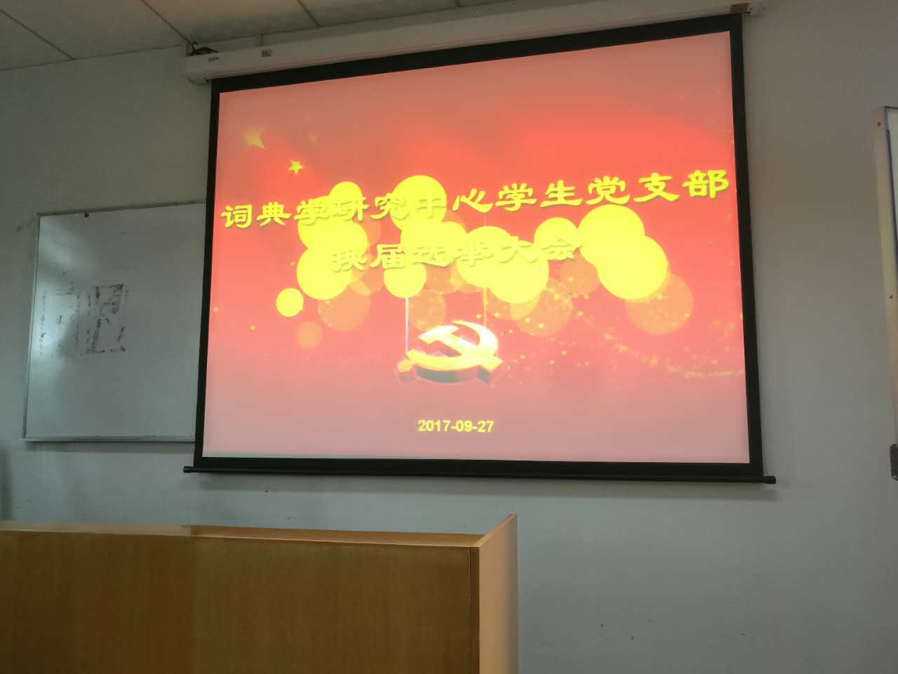 9月27日,词典学研究中心学生党支部于四教420教室举行了党支部换届选举大会。中心所有正式党员、预备党员、发展对象和入党积极分子均参与了此次选举大会。科研党总支潘相宇老师和姚妍晶老师也莅临现场指导。