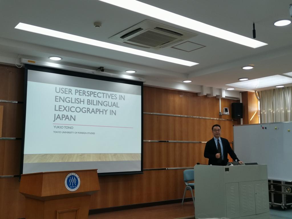 2019年11月4日上午 10:10-12:00,东京外国语大学语料库语言学教授投野由纪夫(Tono Yukio)在北校区MBA中心103室为大家带来了题为“日本英日双语词典学的用户视角”的精彩讲座。投野由纪夫(Tono Yukio)是东京外国语大学世界语言研究中心主任。他2002年从兰卡斯特大学获语料库语言学博士学位,研究兴趣包括语言定量研究、二语词汇习得、外语教学大纲及教材设计中语料库的应用、基于欧洲共同语言参考标准的教学资源开发等。他曾任亚洲辞书学会主席(2013-2016),现任日本英语语料库研究协会主席。参加此次讲座的有丹麦奥胡斯大学的Sven Tarp教授,我校词典学研究中心主任田兵教授,文科基地副主任徐海教授,柳长青,李茜,王淑艳等老师,以及中心的硕博士生。本次讲座由人事处、教师发展中心主办,词典学研究中心承办,讲座由田兵教授主持。