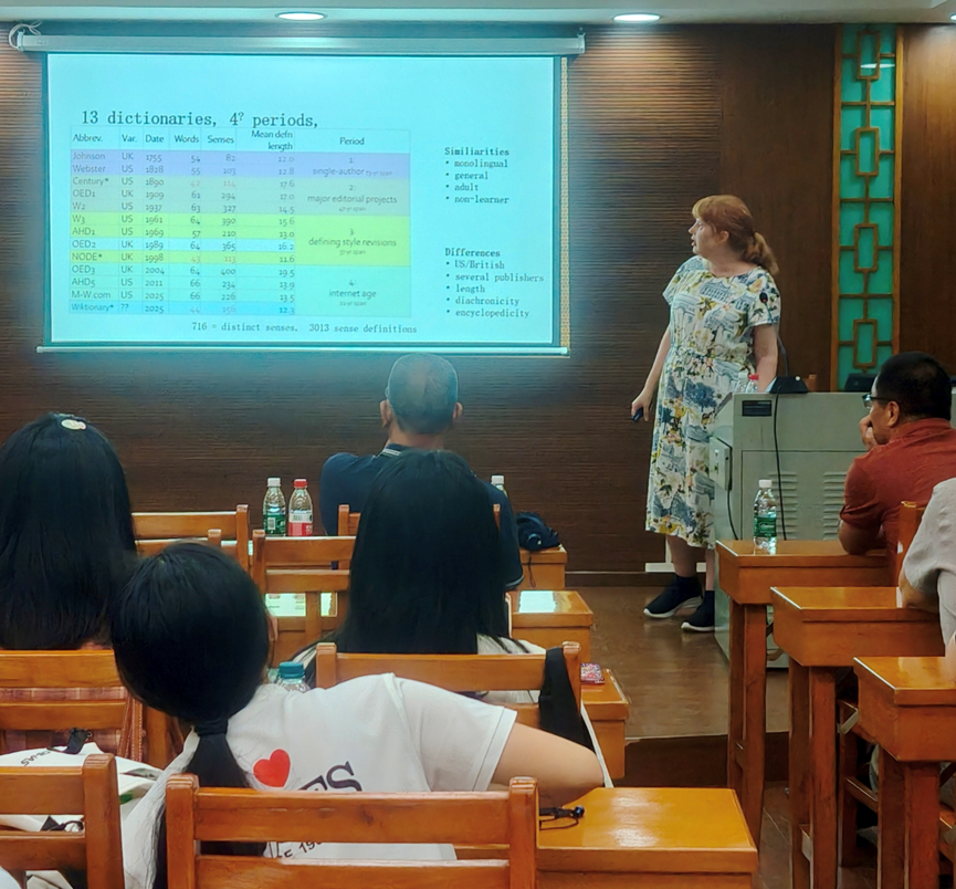外国语言学及应用语言学研究中心/词典学研究中心海外名师讲坛第一场讲座在白云山校区8教 306 教室顺利开展。词典中心老师、硕士生和博士生同学们悉数到场,田兵教授作为主持人致词,对Murphy教授进行了介绍,随后老师和同学们对Murphy教授表示了热烈的欢迎。在师生们期待的目光中,Murphy教授微笑着开始演讲,一场思想的探索之旅正式启程。